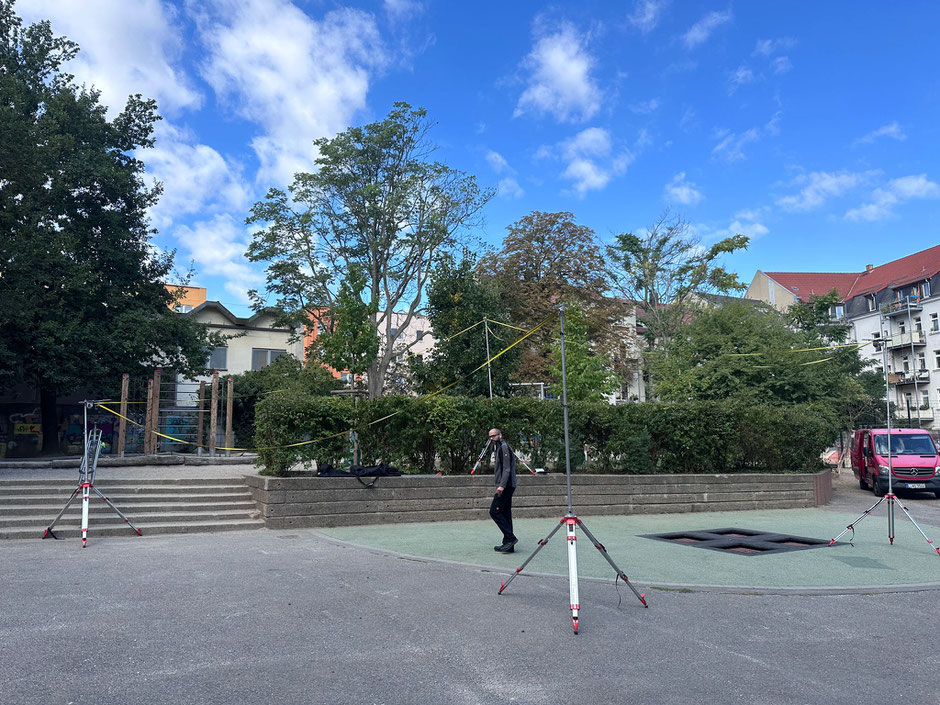 Schulalltag · 27. August 2025 Zweites Sonnensegel ☀️😎Nach dem Sonnensegel ist vor dem Sonnensegel. Oder so ähnlich. 😎☀️ Gestern wurde die Aufstellung eines zweiten Segels simuliert und wenn alles gut läuft, wird es vielleicht noch vor dem nächsten Sommer im Bereich der Trampoline aufgebaut. 🙏🏻 tagPlaceholderTags: